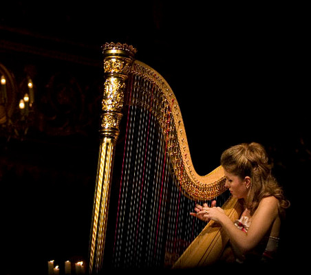 Kateřina Englichová hraje na harfu Lyon&Healy No.23 Gold a Lyon&Healy Black Electroacoustic.